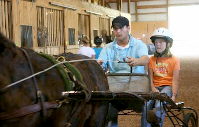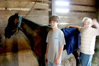 On Saturday morning campers were refreshed and eager to show off at the barn. As parents arrived each camper proudly tacked up his/her pony and rode or drove. The eight campers who had never ridden or driven before managed to ride and drive - by themselves - and were cheered on by their fellow campers and families. It was a bittersweet time for all of us who enjoyed the 2006 campers so much. By 4 pm all but three campers had left so we relaxed with a swim at the lake before having a 16th birthday dinner for Scooter Scheurich. On Sunday we made trips to the airport to send off the remaining campers.