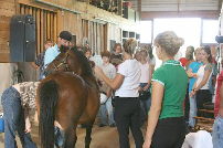 The last group mounted up for a trail ride on Friday morning while the others practiced for Saturday’s "show and go." We also cleaned tack and helped get ready for the Frankfort Horse Show. The picnic at the horse show was just finished when the downpour came and the show was rained out. We did show two classes and came home for a movie night complete with popcorn and s’mores. Camp journals were completed, addresses and emails exchanged, and a teary goodnight for a wonderful group of 18 campers who had made new friends.