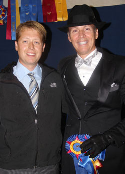 Matt Shiflet congratulates James Sigmon on his win in the Amateur Five-Gaited Stake at ASHAV with his new mount Kalarama's Mr. All American.