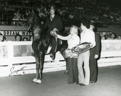Flashback: The legendary CH Sky Watch began his career as the 1979 World's Champion Two-Year-Old Five-Gaited winner with Mitch Clark showing for owner/breeder Mrs. Judson Large. Michele Macfarlane bought the stallion son of Flight Time and Aries Golden Gift later that fall and owned him throughout his career, which included a Louisville sweep of the junior division, (5) World's Champion Five-Gaited Stallion titles and (4) World's Grand Championships, three with Clark and one with Macfarlane.