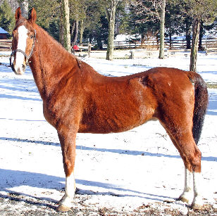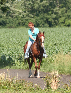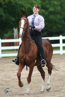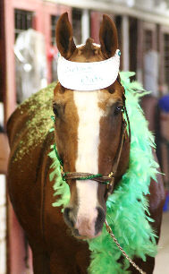 “After a short phone conversation with Nealia, she sold me on one particular gelding that Saddlebred Rescue had acquired through the sale. Since then, "Captain" has exceeded everyone's expectations. He is a very laid back, no-nonsense type of horse, ideal for introducing a newcomer to the world of Saddlebreds. The kids enjoy him so much we rarely ride him at all anymore, save for the few bareback trail rides over the summer. Now, for a sporadic half hour somewhere within the week, he walks or walk/trots around the arena with children as young as six years old aboard. He has done a little bit of everything a tolerant horse should do: from being used as a birthday party horse for a group of several young boys, to being shown in three classes (winning two), and wearing a visor and boa (among other decorations) in a youth club "horse decorating" contest. He does his job obediently and then enjoys the attention and treats he receives afterward.