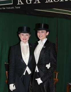 Charlotte Smith and Lizzie Ruffner before their Championship and Reserve Championship rides in the Equitation Senior Saddle Seat Championship on Saturday evening, both ride under the direction of Nikki Rae Woodworth for KGA Morgans at Connecticut Morgan.