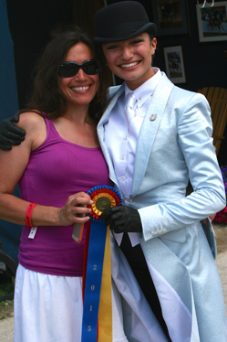 Michelle Soule congratulates her daughter Isabel after she wins the Junior Exhibitor Three-Gaited Championship at Devon Horse Show with Southern Tango. Soule rides with High Tail Farm LLC and this was their first trip to Devon.