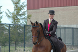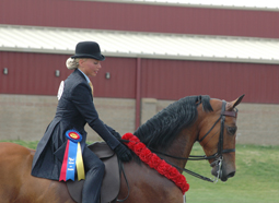 Lauren Lang earned her first of three tricolors as she rode Temptation's Answer to the Saddle Seat Equitation Championship.