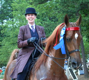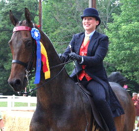 Riding One Moore Harlem, Erin Breslin was in top form to win the championship and qualifier in the saddle seat equitation division under the direction of Heather Boodey.