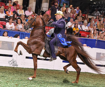 “We have the greatest group of horses ever assembled for one show,” said chairman Bob Funkhouser. “Where else would you have the opportunity to see the likes of Ledgefields Jagged Edge, the 2021 Morgan World Champion Park Saddle winner; GR CH My Casey, the 2021 World’s Grand Champion Road Horse; Epoque Kiss NKR, the sensational 2021 World’s Champion Five-Gaited Stallion; Heartland Anthem, the 2021 World’s Champion of Champions Hackney Pleasure Driving Pony; Sensationalist, the 2021 World Champion Pleasure Driving and 2020 World Champion English Pleasure horse; Dheir To Tango, the 2021 Reserve World’s Champion of Champions Junior Fine Harness winner; Dragonsmeade Varvatos GCH, the current Youth English Pleasure World Champion; as well as the 2021 World Champion Hunter Pleasure winner Bay State Guinness CH, 2021 World Champion Amateur Hunter Pleasure winner LCK Stardust, and 2020, 2019 and 2018 World Champion Amateur Hunter Pleasure titleholder SPR Wing It GCH, all in one session? And as a special treat, the legendary stallion Graycliff Tony GCH is coming out of retirement to once again grace the show ring with his brilliance and athletic ability.