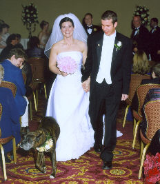 “Sarah and I got married three years ago at Wentworth By The Sea, a beautiful hotel redone by Marriott. Being horse and dog people, we decided we wanted Belle, our boxer at the time, to be the flower girl in the wedding.