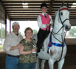 another great show, winning both Country Western Pleasure classes aboard her Likely Suspect and the Amateur Three-Gaited Park title with her seasoned Jigsaw Johnny.