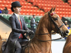 Katya Lammey awaited the announcer's call in the Junior Exhibitor Three-Gaited qualifier at the UPHA 14 Spring Premiere. She won both the qualifier and championship aboard Tia Margarita while representing Fairfield South.