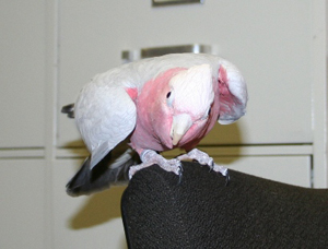 Rosey, an Australian Rose-Breasted Cockatoo and the unofficial mascot of Willowbank Farm.