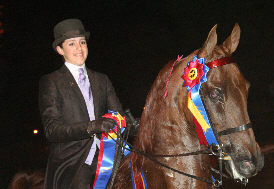 Lisa Heres-Rosenberger had her time in the winner’s circle in the Ladies Five-Gaited class with Coastal Caper for Pinetree Stables. With the crowd behind her Christy Parker presented CH Executive Dunk for the reserve for new owner Katie Boysen. Boysen is looking forward to campaigning this proven champion in the junior exhibitor ranks.