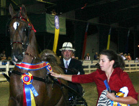 Rosenberger was back to the winner’s circle, this time meeting a thrilled Cindy Wagoner as she moved up to win the Amateur Five-Gaited Championship with Lawman. Our Silver Charm had two great shows with George Anne Nash to win the amateur qualifier and return for the reserve in the championship under the direction of Julia and Steve Joyce. With these titles, this sporty chestnut earned his CH status.