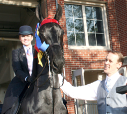 Lexie Flint boldly moved from the walk and trot equitation division to the 13 and under show pleasure this week. At the end of 2007, Robert and Melissa Flint purchased the trimmed in chrome chestnut Callaway’s Forty-Niner and over the next few months Lexie worked with trainer Clark Clouse to prepare for their debut. It was a stunning picture when this young girl victoriously piloted the majestic horse around the ring. Also debuting were Sir Chocolate and Morgan Glocke. This team earned the qualifying reserve with Clever Man and Jennifer Leech to earn the championship reserve.