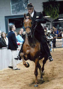 Tre' Lee was in the irons for agent John T. Jones, Prospect Lane, Versailles, Kentucky, to present Coco Royale for public offering. The five-year-old three-gaited gelding already has an impressive career, including the 2005 National Three-Year-Old Futurity Three-Gaited World's Championship. He has reliably continued, most recently winning the 2006 Junior Three-Gaited class at the Kentucky Spring Premier and a Reserve Championship in the Three-Gaited Four-Year-Old Sweepstakes. His titles as both a Horse World's People's Choice Reserve Champion and National Horseman's All American winner were justified as he expertly entertained bidding. Consigned by Saddlewood Farm, Ltd., Maple Park, Illinois, Coco Royale was selected by Elaine Gregory, Brookfield, Vermont. A $22,000.00 ticket sealed the purchase.
