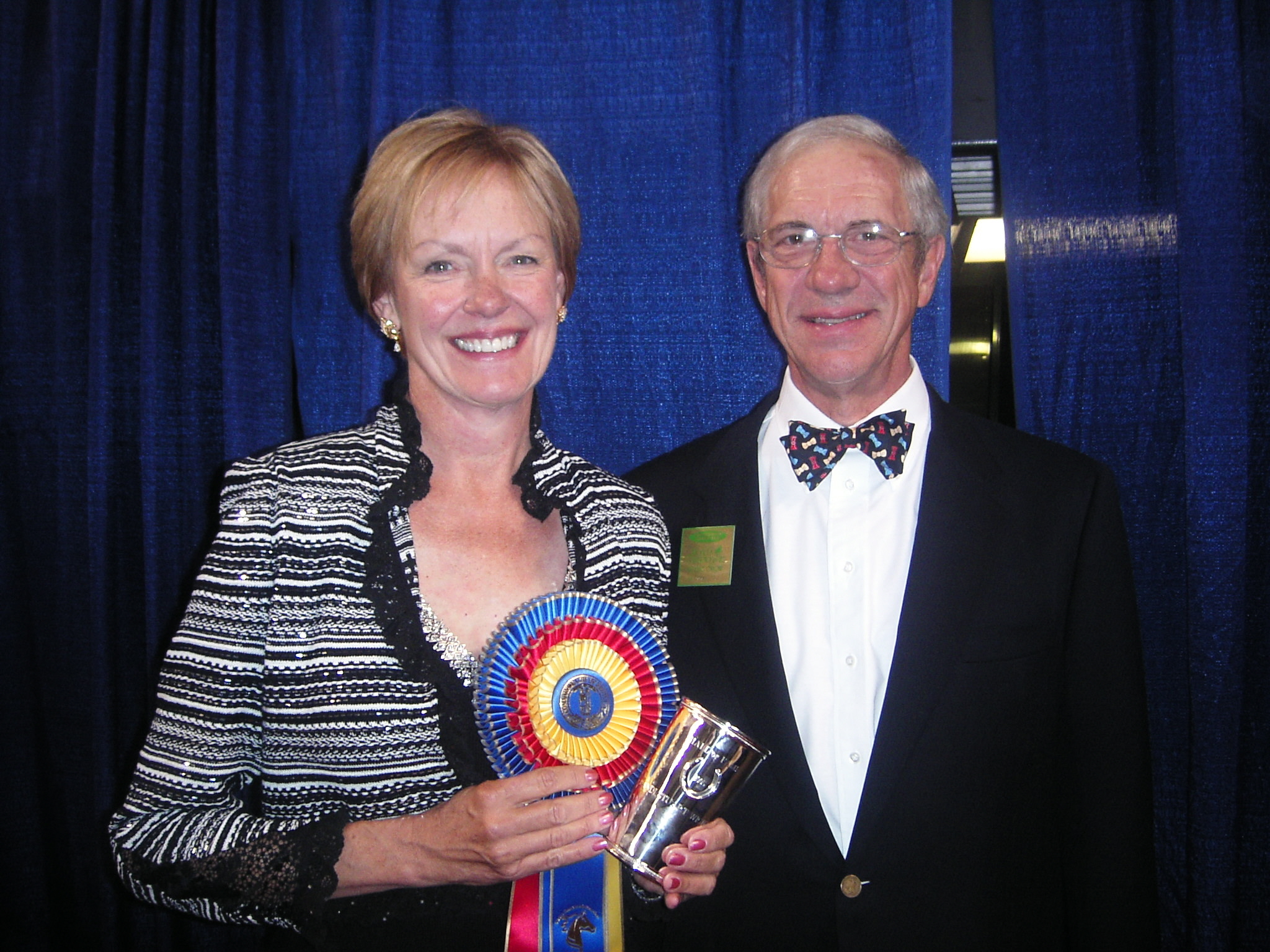 Under the management of Charles and Helen Crabtree, CH I've Decided was purchased as her juvenile/amateur three-gaited mount in 1961. The following year, five-gaited gelding CH Legal Tender and Randi began their domination of juvenile, ladies and amateur classes. Added to the string was the legendary equitation horse Storm Cloud, with whom Randi won the American Horse Shows Association Medal Final in 1963 and the National Horse Show "Good Hands" Final in 1964. In 1965, CH Sensational Princess and Randi set a record at the World's Championship Horse Show that has never been equaled – eleven amateur-shown World's Championships in the five-gaited division (Juvenile, Ladies and Amateur), shown by the same person. At the age of only nineteen, Randi received the 1967 "Horsewoman of the Year" Award from the American Horse Shows Association (USEF) – the first amateur Saddlebred rider so honored. Another horse of note was Hall of Fame mare Oman's Anacacho Maytime, dam to CH Yorktown – developed by Charles Crabtree into the World's Two-Year-Old Five-Gaited Champion in 1966, and later the winner of three World's Grand Championships for Jean McLean Davis and trainer, Tom Moore. CH Summer Melody, CH Yankee Robinson, CH Dow Jones, CH Burning Tree's Big Country and CH Cedar Creek Cactus Flower continued Randi's list of World's Champions. CH Admiral's Mark, purchased in 1987, was already an eight-time World's Champion with Mary Gaylord. Under the direction of Redd Crabtree, Randi became one of the few amateur women to win the Five Gaited Gelding Stake. In the World's Grand Championship they placed Reserve – then the highest award ever achieved by an amateur woman in the historic class – and the judges' decision was split for the first time in a decade. Four additional World's Championships later (the last with Randi's son Malcolm), CH Admiral's Mark's twelve World's Championships shown by an amateur had eclipsed the record of CH Sensational Princess by one – but it had taken three different riders to do it.