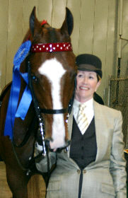 Carol Hillenbrand had quite a night. She directed CH Just Special to the Adult 39 and Over Three-Gaited Show Pleasure blue and then returned five classes later to make the victory pass with CH Swish in the amateur stallion/gelding gaited class.