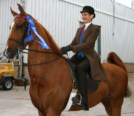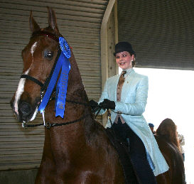 The Amateur Three-Gaited 15.2 and Over class proved to be a competition of world and national champions. New York’s Perfect Gift and Betsy Thomas rode off with the unanimous decision of the judges with CH Sue She and Ericka Nelson riding hard for reserve.